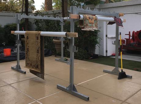 Consists of 6 cross beam rug hanging slots and includes rug lifting/hanging ladder rungs. Adjustable width between Dry Tower sides (2’x12’ studs recommended). Schedule 40 PVC or corrugated sewer pipe is recommended to cover the studs to prevent creases in the rugs while drying. Heavy rugs can be lifted by one person using the ladder rungs. Bonus hanging area for shorter rugs (6’).